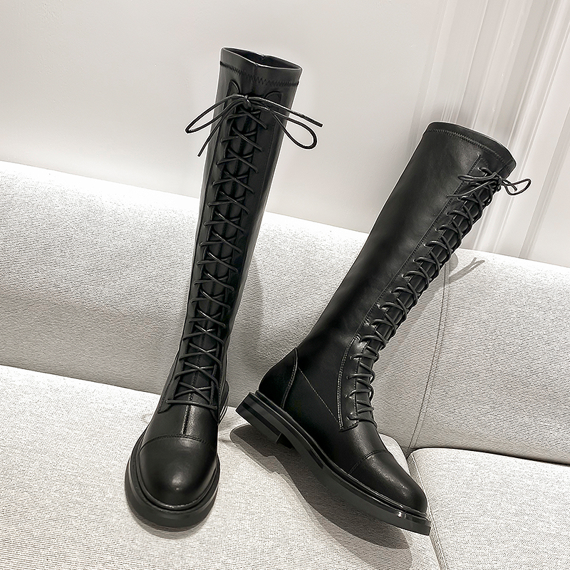 2020 new net red boots strap elastic boots but knee high boots thin boots slim boots