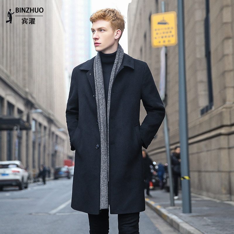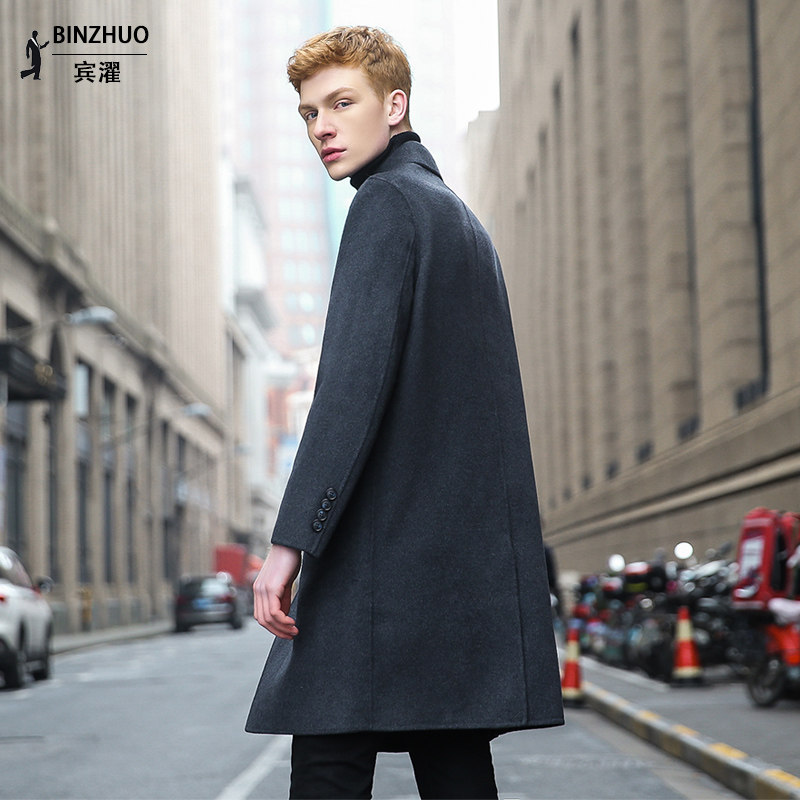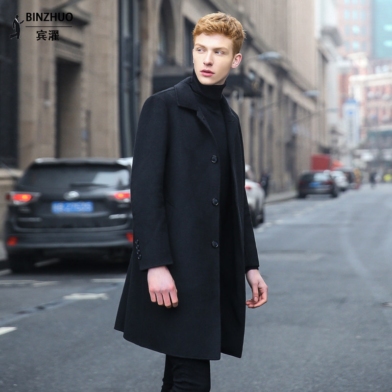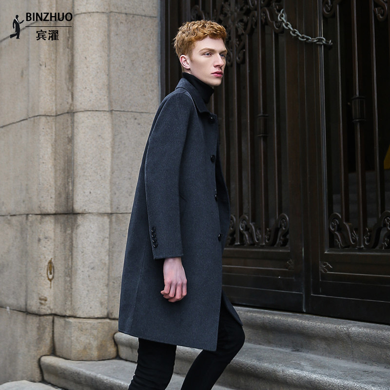 Wool, big coat men's double-sided cashmere jacket with long version over knee Han version autumn and winter thickened sub-wind clothes
