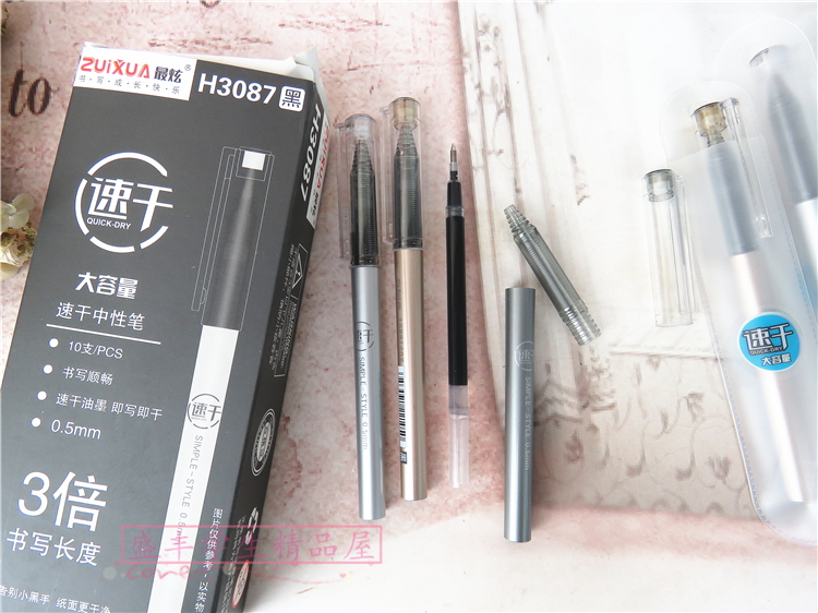Gel pen bullet refill water pen black ball pen for students with quick-drying pen triple large-capacity gel pen