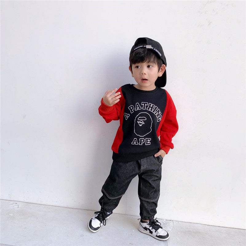 Autumn and winter bape Tide brand children plus velvet stitching apes head sweatshirt