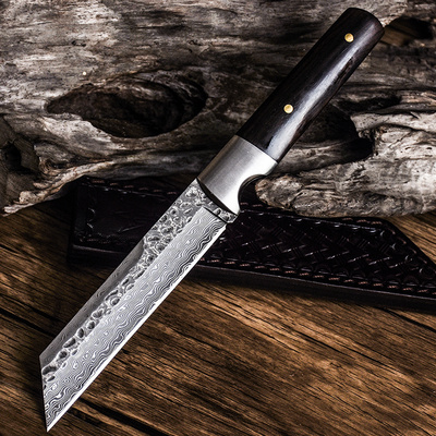 Wilderness sharp portable self-defense outdoor knife hand forged Damascus short knife Saber pattern forged small knife