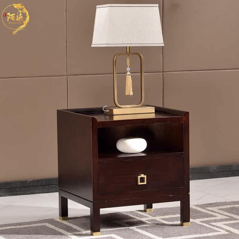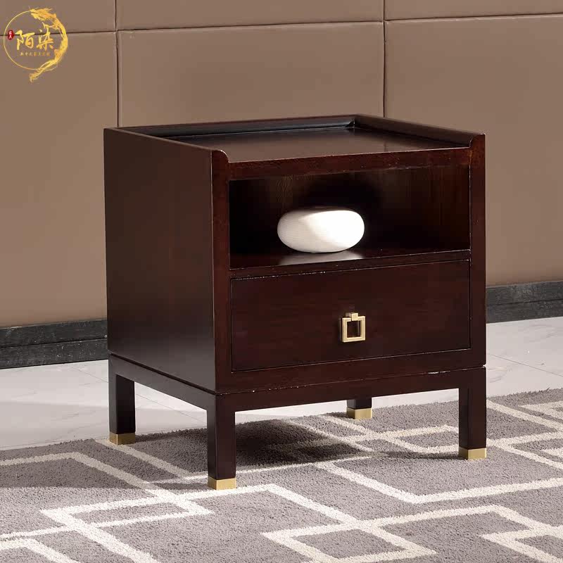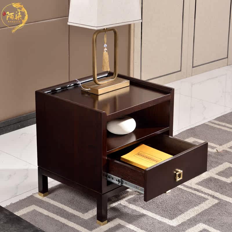 New Chinese bedside table ash wood self-assembled structure solid wood locker bedroom bedside storage cabinet metal single drawer