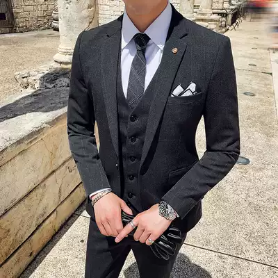 Casual suit suit suit men's three-piece set Korean version of self-cultivation professional dress groom best man dress British suit