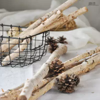 Traces of natural wooden sticks, bundles of decorative wooden sticks, fruit tree branches, American country birch, DIY retro flower arrangement, dried branches