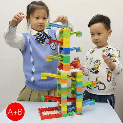 Building blocks, big particles, DIY gliding rail car children's slide Road toy car Boy 3-6 year old car