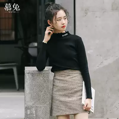 High waisted plaid skirt autumn and winter women 2021 New A- line dress retro high waist chic hip hip skirt