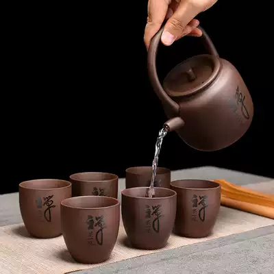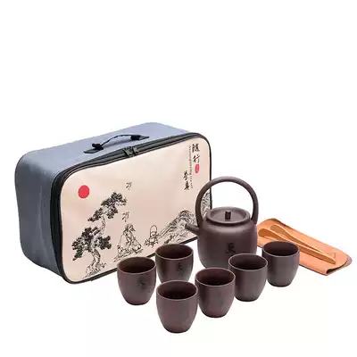 Purple sand lifting beam pot kung fu tea set Small set porcelain teapot tea cup single pot single cup whole set delivery bag tray