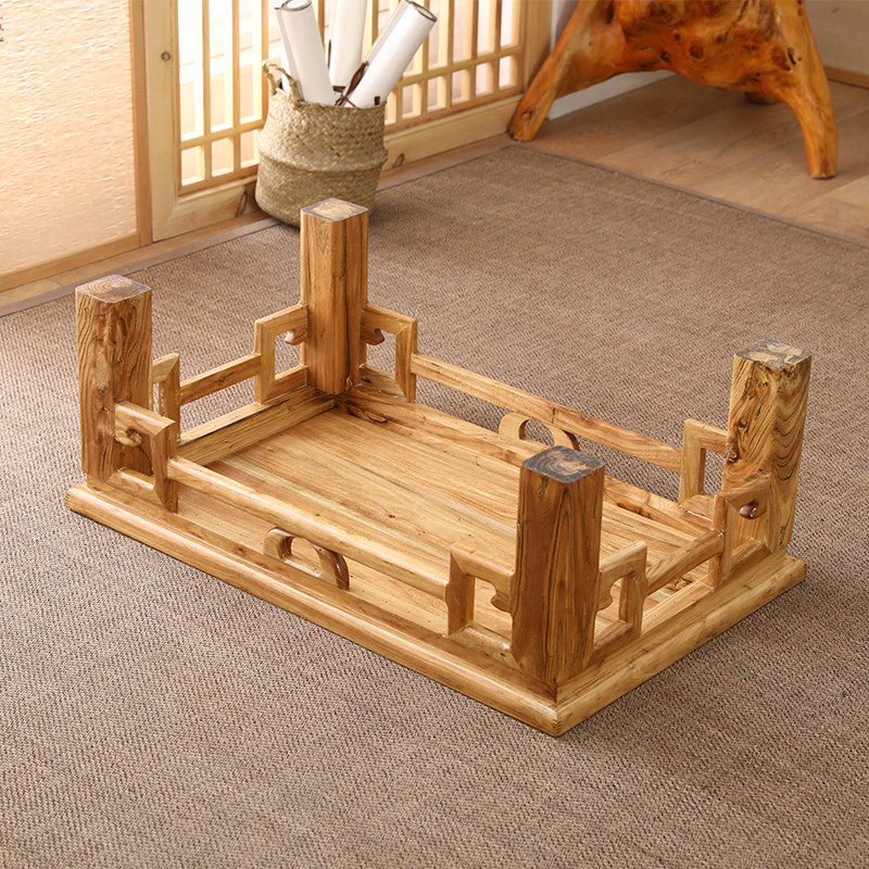 Floating window small tea table dwarf table Japanese style Zen-style tea table solid wood tatami tea table Chinese balcony elm wood kang table