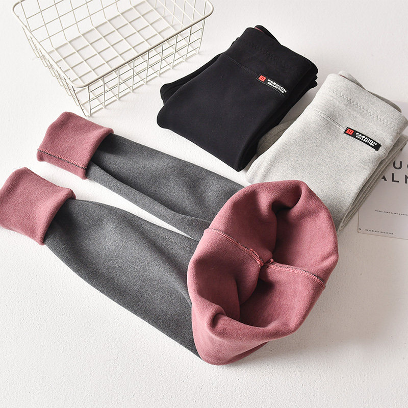Plus velvet underwear women's outer wear thin velvet thick autumn and winter small feet high waist gray can be worn outside the cotton extended warm pants