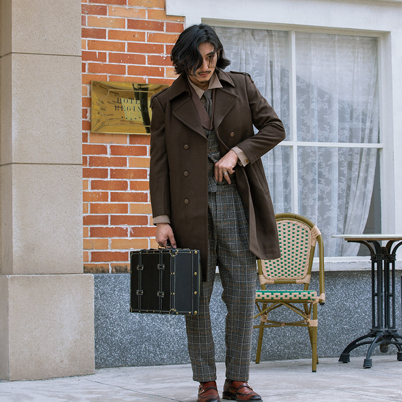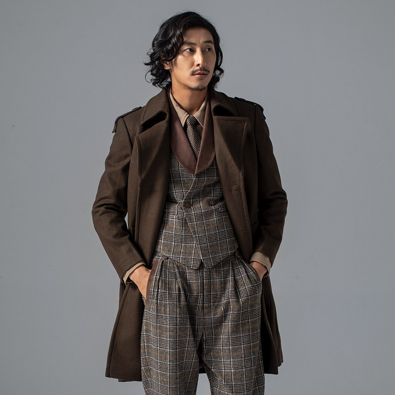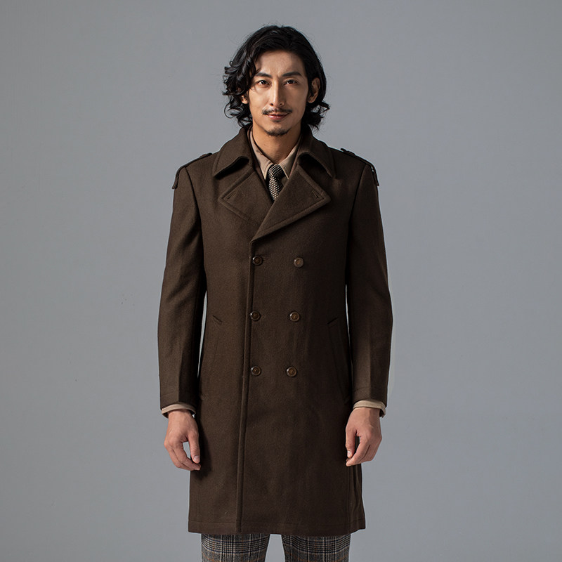 SOARIN British retro style double-breasted trench coat men's woolen woolen mid-length casual slim coat cape