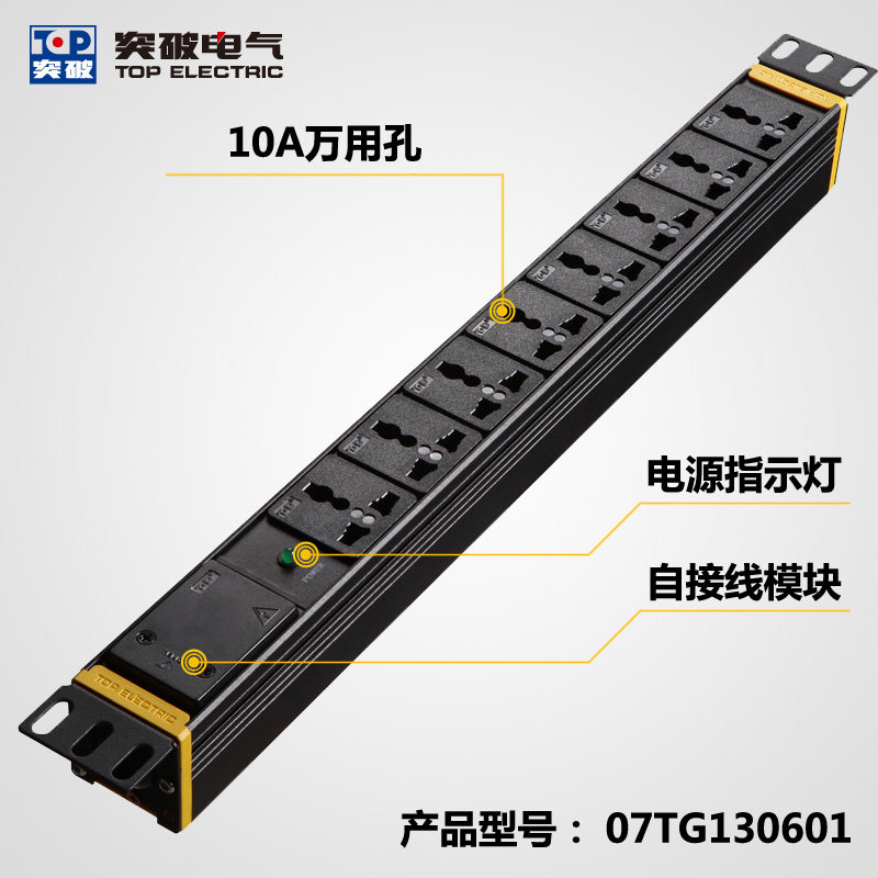 Breakthrough cabinet PDU socket eight-connected 16A 4000W 8-bit 10A hole 07TG130601 3 meters 5 meters 10 meters line