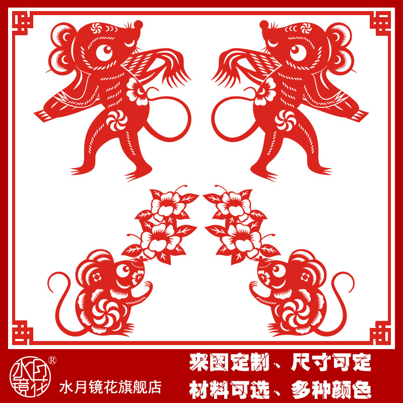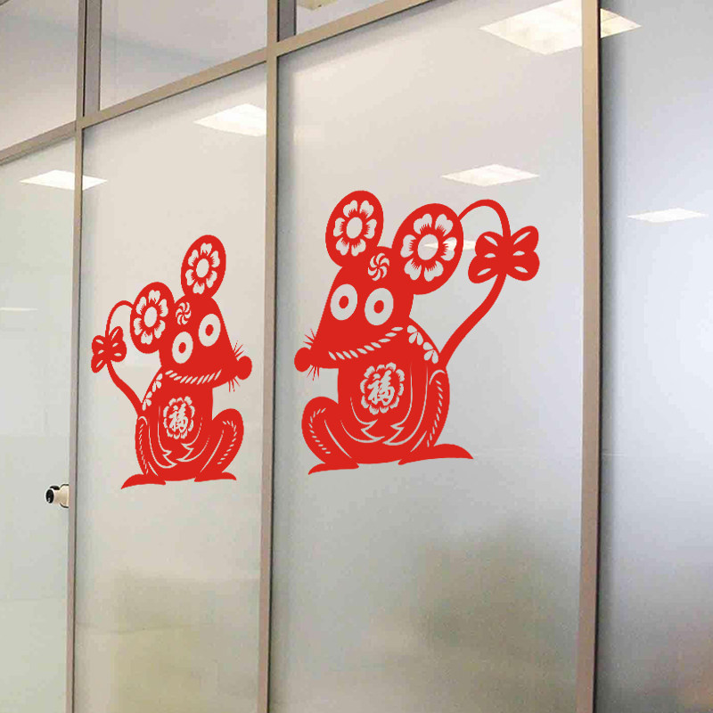 Water moon mirror flower Rat year Spring Festival decoration supplies window glass blessing word stickers window stickers New Year layout window stickers