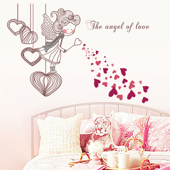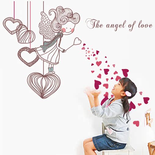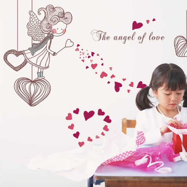 Girl room bed decoration sticker art Children's room kindergarten decoration cartoon angel self-adhesive wall sticker