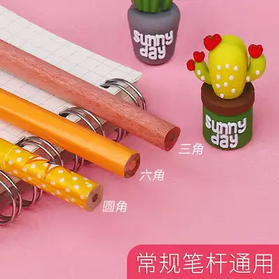 Cartoon Pen Cap Pen cover silicone pencil protective cover Primary School students cute pencil cover soft rubber hand guard pencil cap pen cap pen cap cap short pencil head growth extension rod Pen Holder