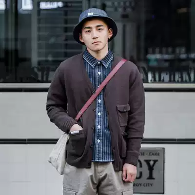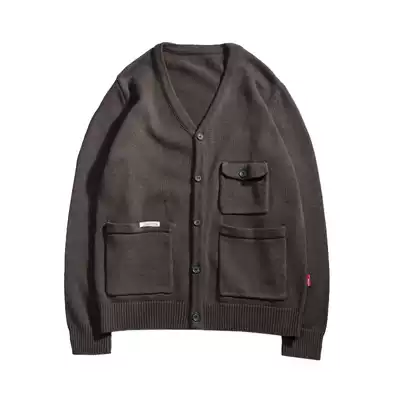 BDCT original Japanese retro knitwear men's cardigan jacket trendy solid color casual V-neck loose sweater jacket autumn