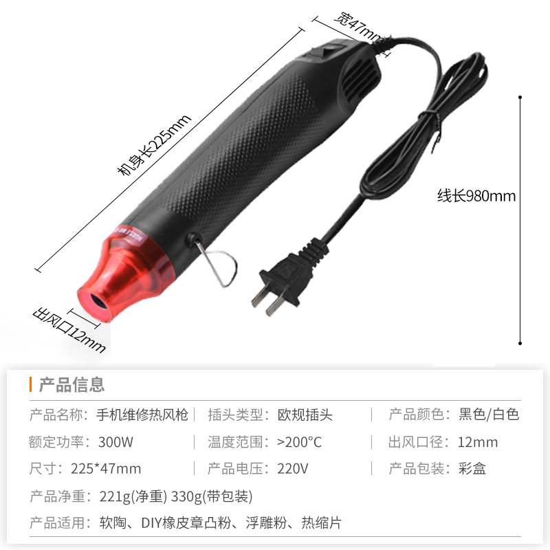 Hot Wind Gun White Standalone Hot Wind Gun Black Single Machine 300W Hot Wind Gun Pearl White (tweezers) 300W Hot wind gun charm Black section (tweezers) 300W Hot wind gun pearl white