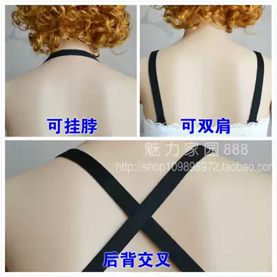White hanging neck lengthened underwear with 40 50 55 long shoulder straps 1 5 wide sexy beautiful back cross exposed invisible text