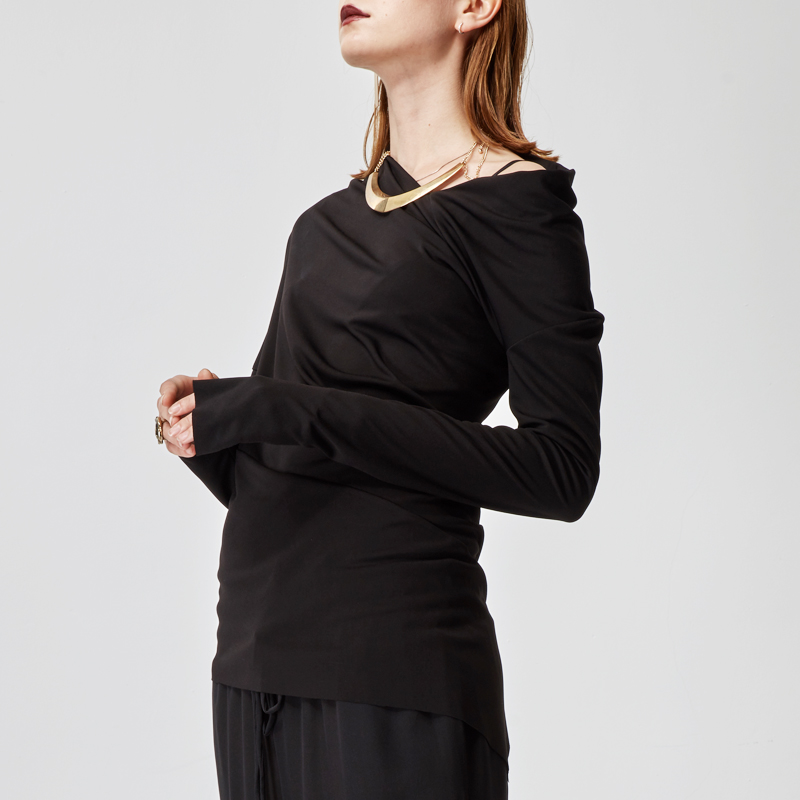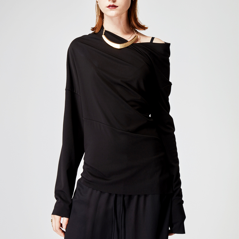 Black beating undershirt female inside lap machine long sleeve T-shirt irregular originality feeling small and inclined shoulder clothes spring