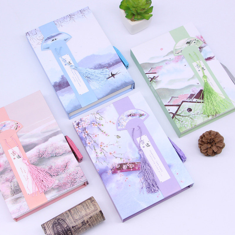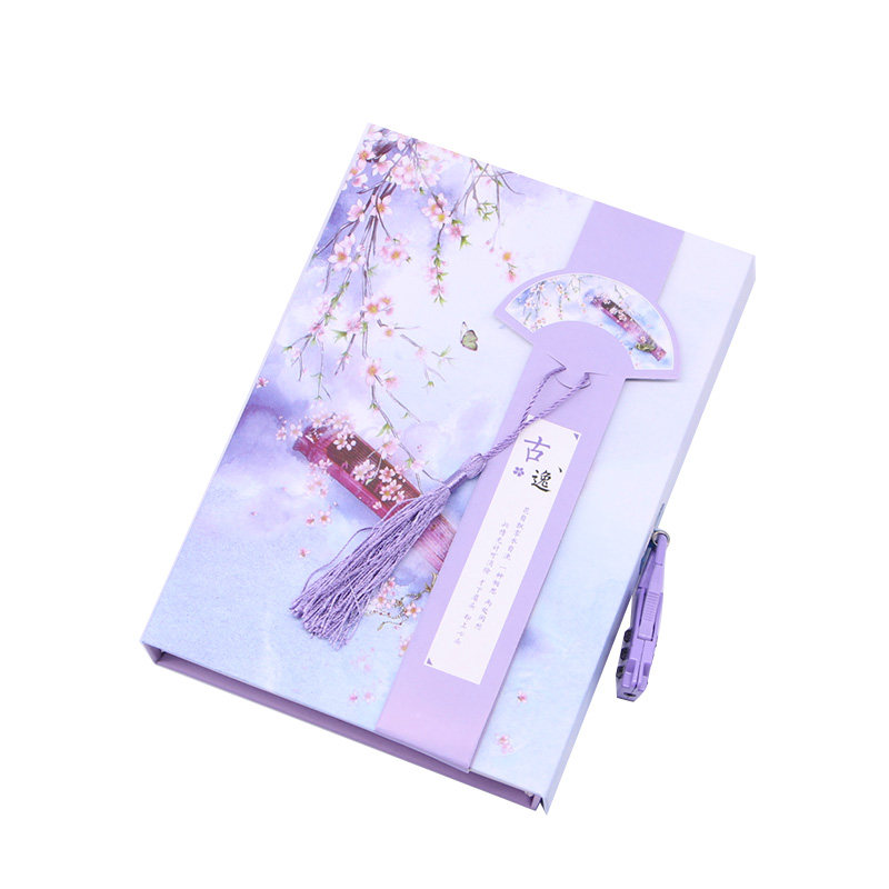Boxed illustration Chinese style tassel with lock password book ancient style hand book student diary notepad gift