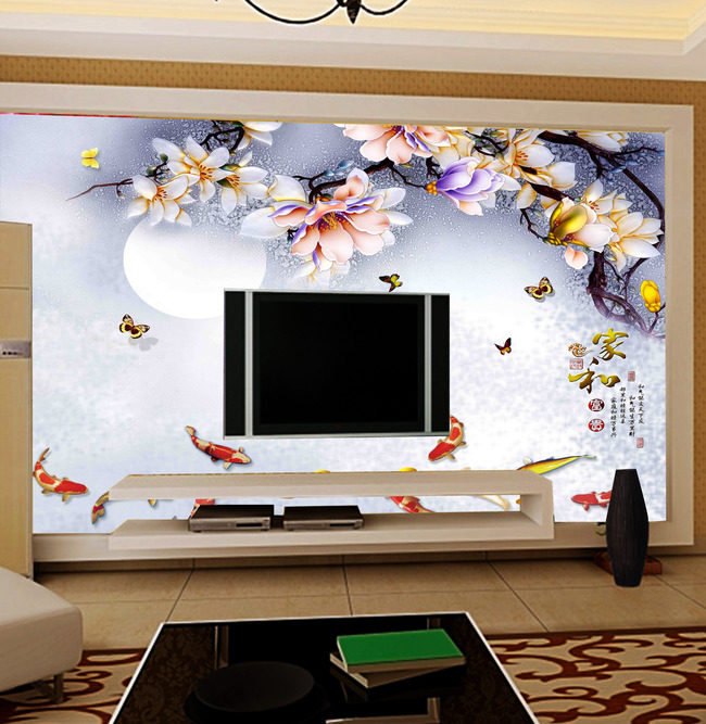 TV series background wall HD UV wallpaper 3D flashing silver oil painting canvas background wall porch three-dimensional painting Landscape painting