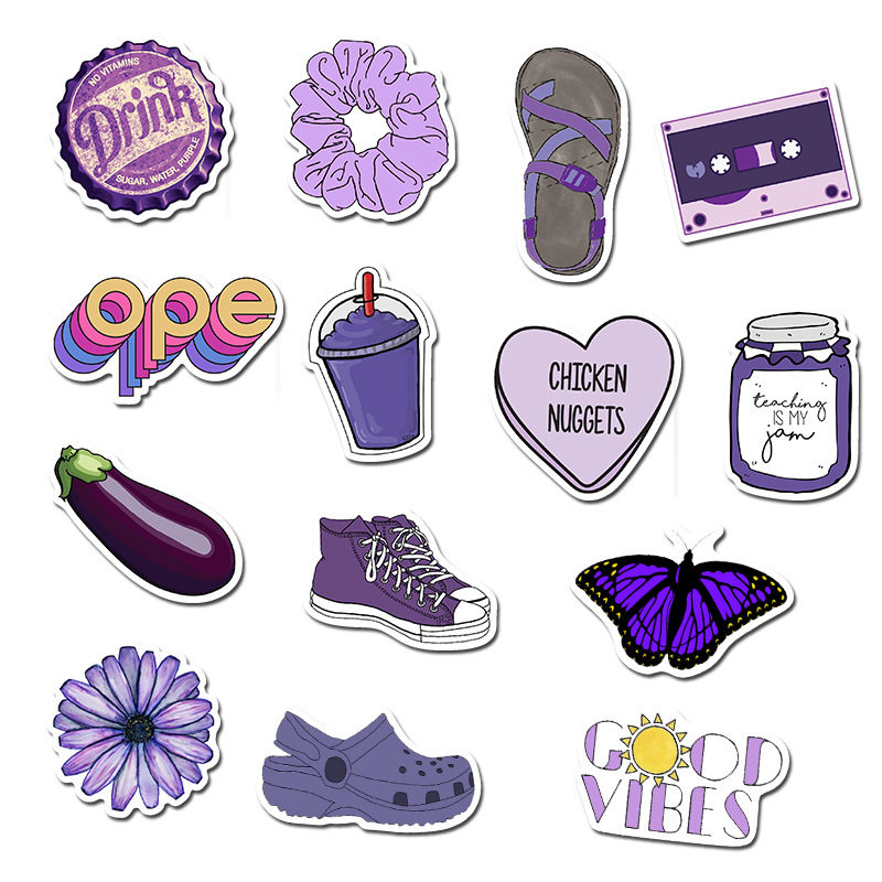 50 Sheets of Purple Little Fresh Cartoon Graffiti Sticker Suitcase Water Cup Skateboard Refrigerator Waterproofing Collage