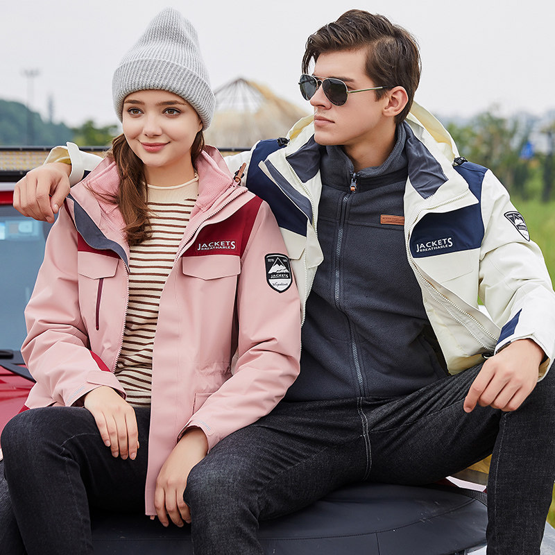 Winter camouflage jacket women's tide brand tooling plus velvet thickened three-in-one detachable windbreaker jacket men's waterproof