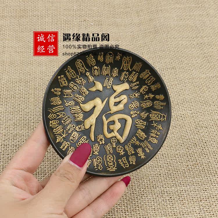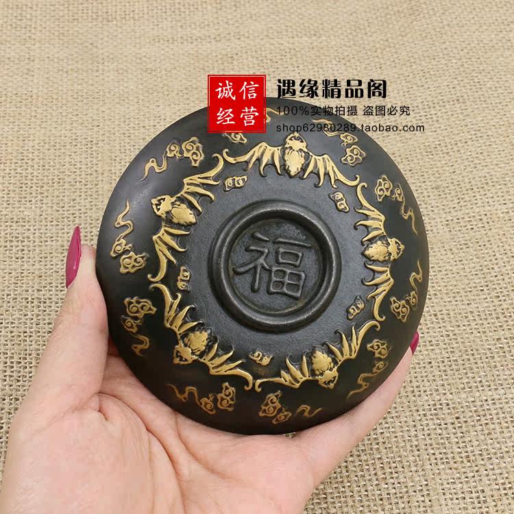 Antique made old pure brass brass Cure gold small plate disc embossed with thyme bats diameter 9 5cm
