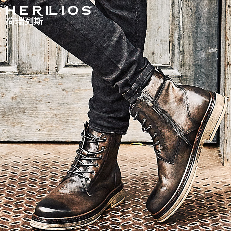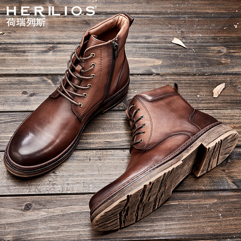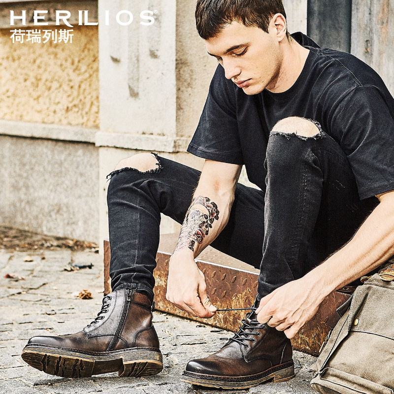 Martin Boots Man Genuine Leather Men's Shoes High Drum Inlen Wind Thick Bottom Ins Retro Tooling Boots Business Middle Cylinder Tide Boots Man