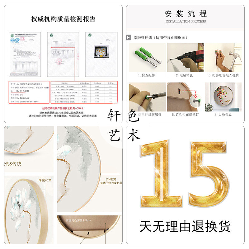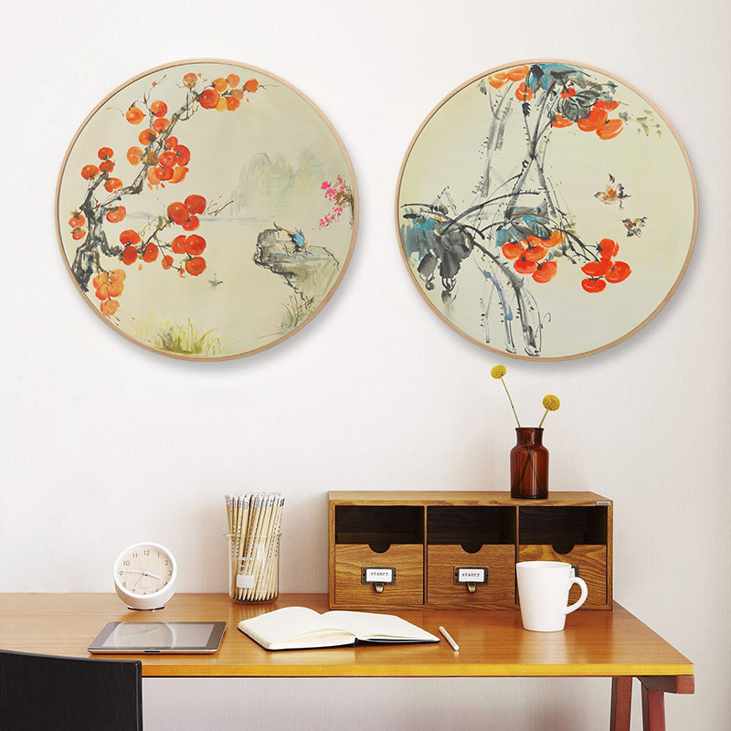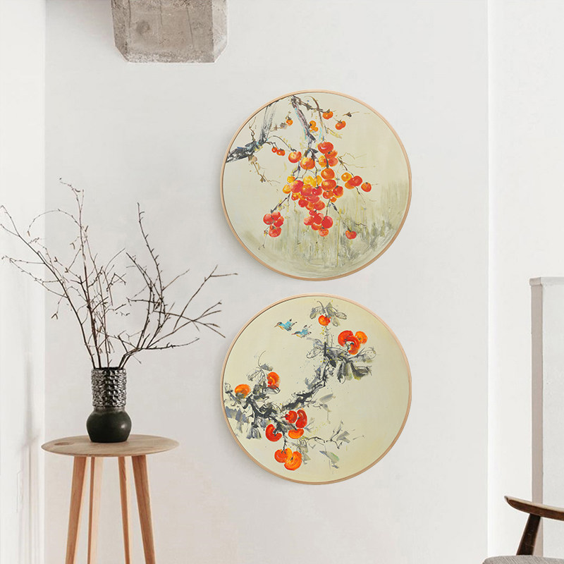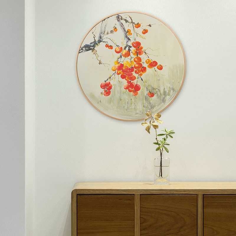New Chinese round hanging painting hand-painted oil painting drawing room decoration painting Xuanguan gangway sofa background wall hanging painted persimmon murals