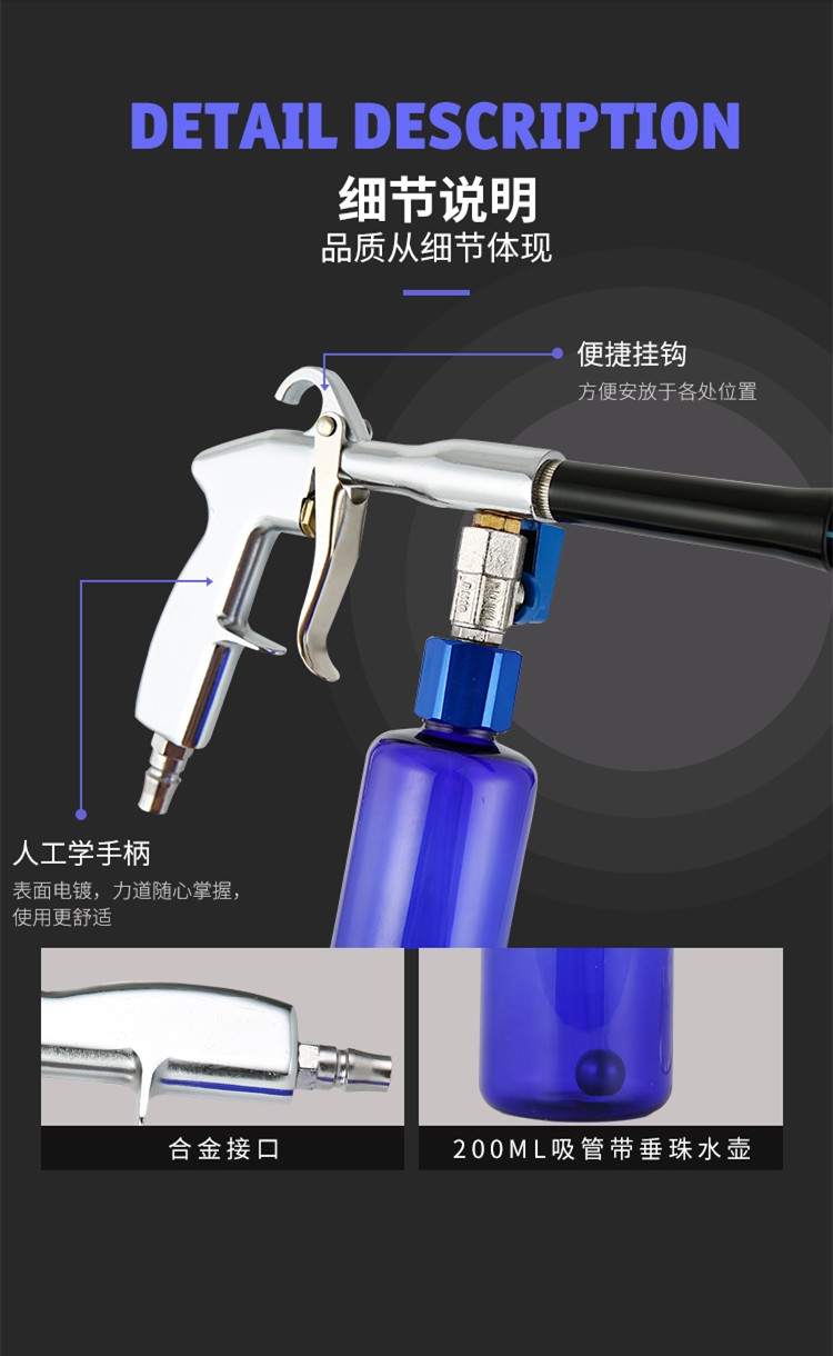Car tornado roof cleaning gun interior cleaning gun flat tube trim seat door panel coated fleece fabric headliner