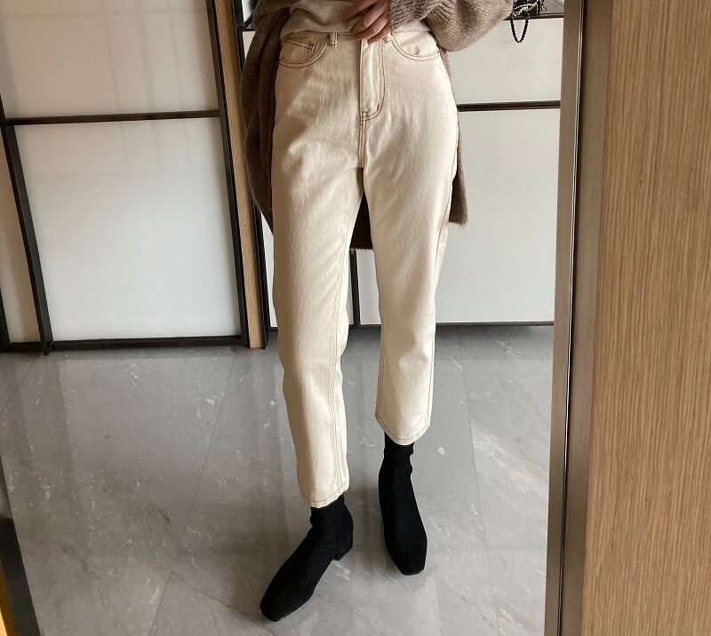 High Waist Beige Jeans Women 2022 Spring Dress New 100 Hitch Slim Fit Slim Fit Wide Leg Summer Straight Drum Pants