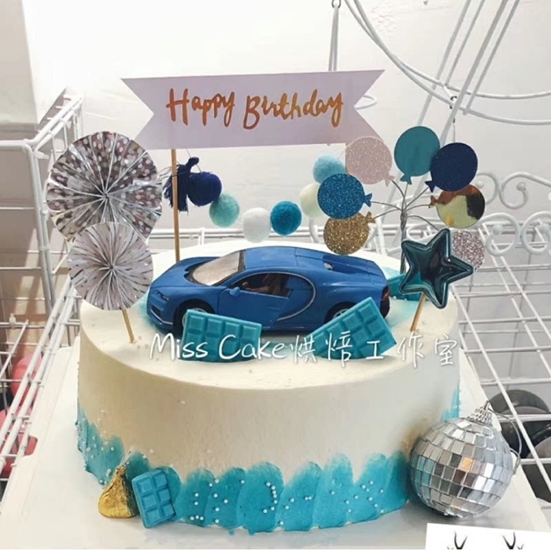 Birthday cake decoration Car decoration Blue car simulation model sports car Off-road vehicle Dessert table decoration