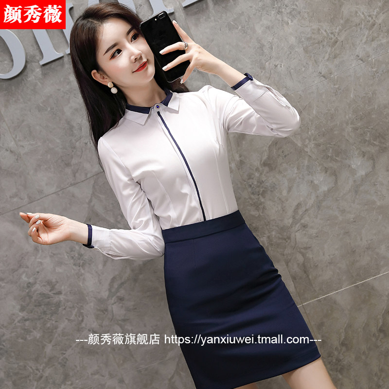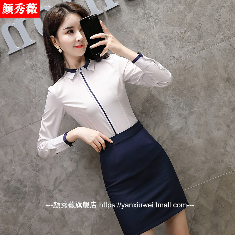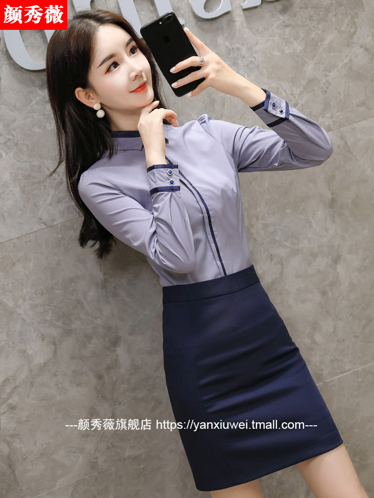 Professional wear women's suit fashion temperament celebrity long-sleeved shirt women's skirt overalls stewardess uniform front desk tooling