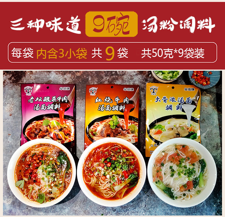 Rice flour soup stock with soup noodles Seasoning Bag Sour vegetable mix noodles with red Burned beef Beef Powder Large Bony Broth Rice Noodle Hat