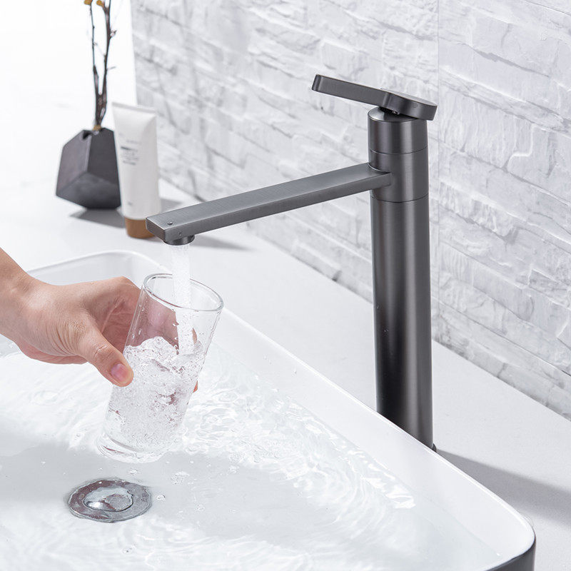 Modern basin faucet cold and hot water pot on the basin bathroom gun gray-gold single hole tap
