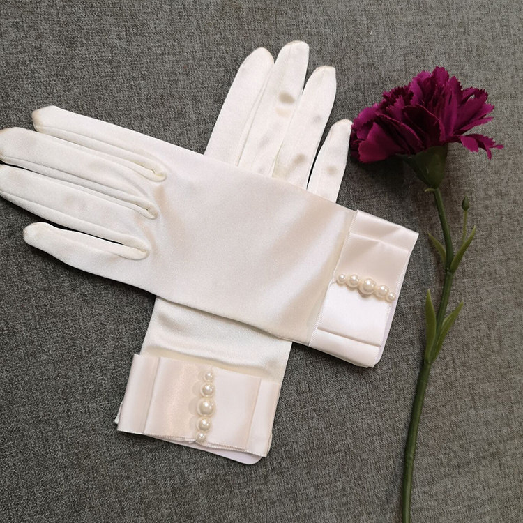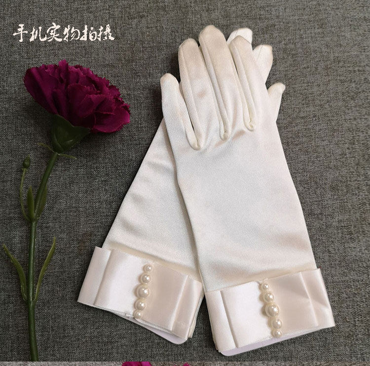 Hepburn Bride Wedding Gloves Satin Wedding Gloves Short Short Fingers Korean Style Style Broadcasting Brigade Show