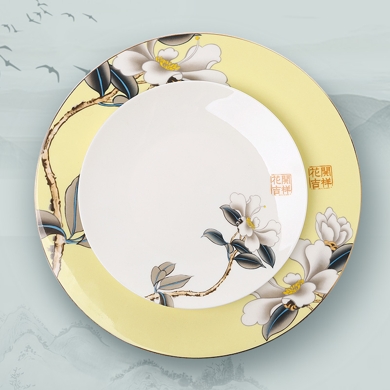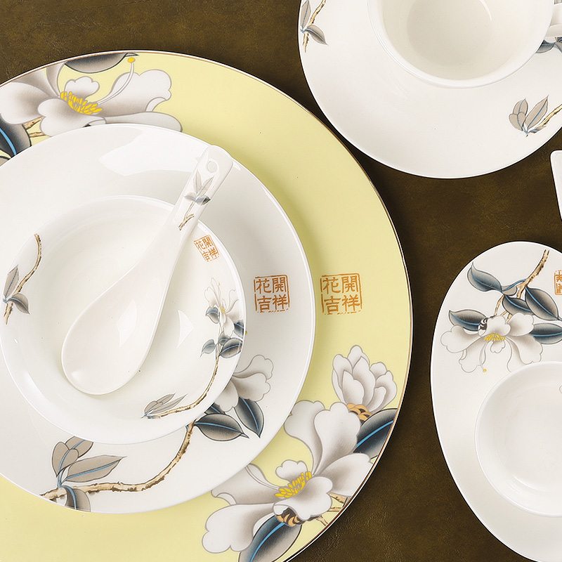 New Chinese Hotel West Cutlery Clubhouse Round Table Bull Pickpocketing Dinner Plate Creative decorative plate Dining Bowl Spoon Suit Home
