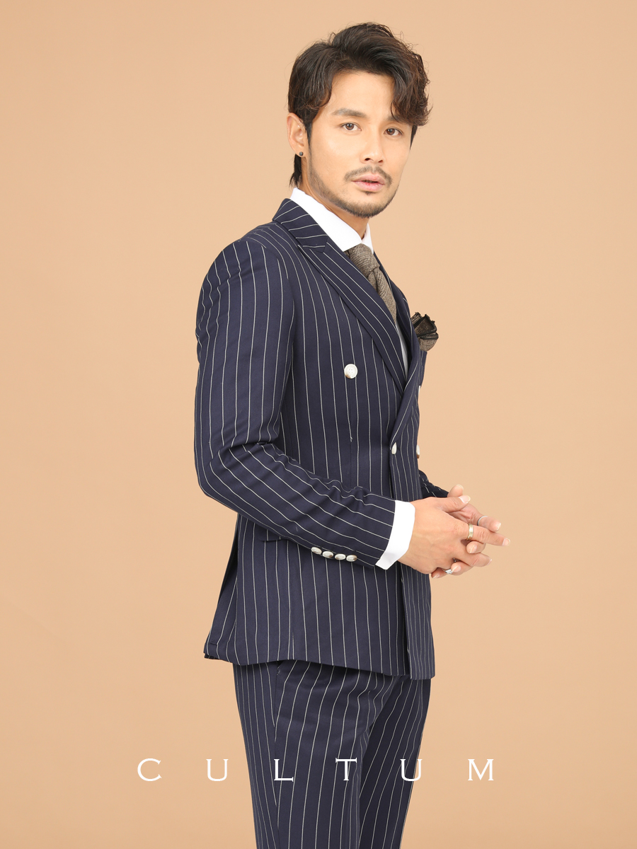 TYingren Gentleman Double Row Buttoned Striped Suit Man Han Version Trend Business fit for a casual suit Single West