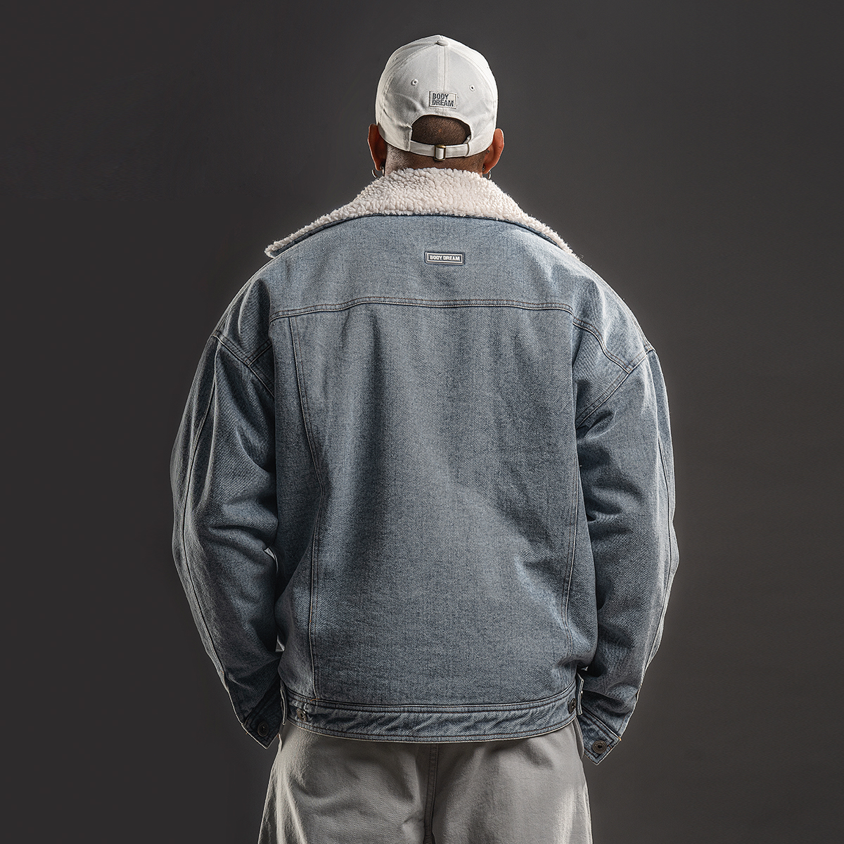 BD Bodybuilding Denim Jacket Man Winter Windproof Warm Plus Suede Thickening 100 Hitch Fashion Denim Lamb Suede Jacket