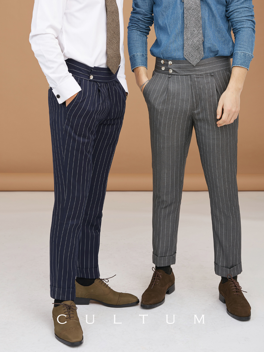 Striped Belt-free Western Suit Pants Men's Body Business Authentic fashion Han version Trend free of ironing straight tube Westined pants