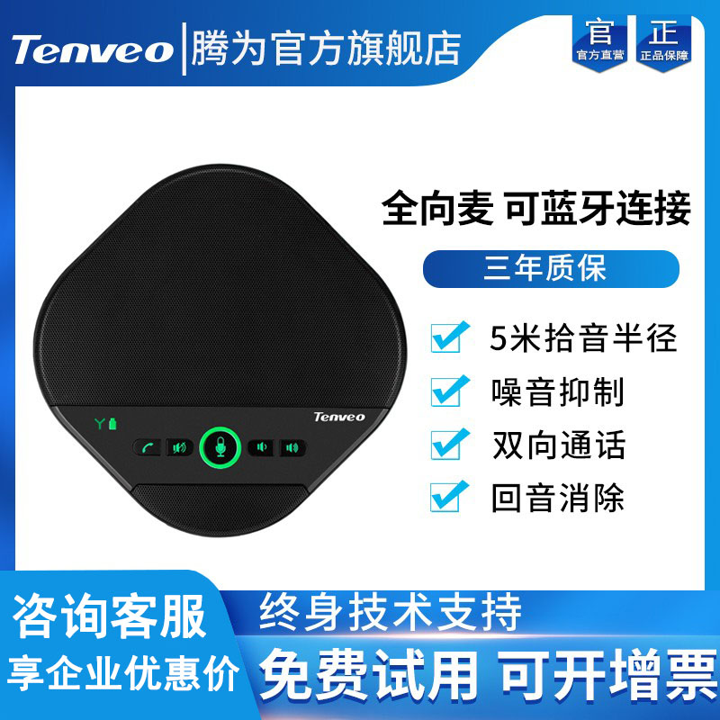 Tenveo Teng for video conferencing omnidirectional microphone USB wireless Bluetooth conference desktop hands-free call speaker no echo noise reduction pickup external omni-directional 360 degree radio amplifier