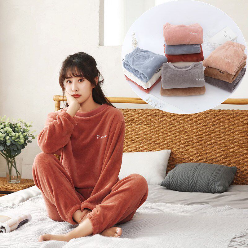Fairy warm pants top autumn and winter suits thickened coral fleece outer wear lazy loose warm casual home pants