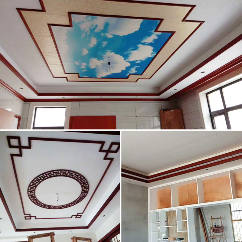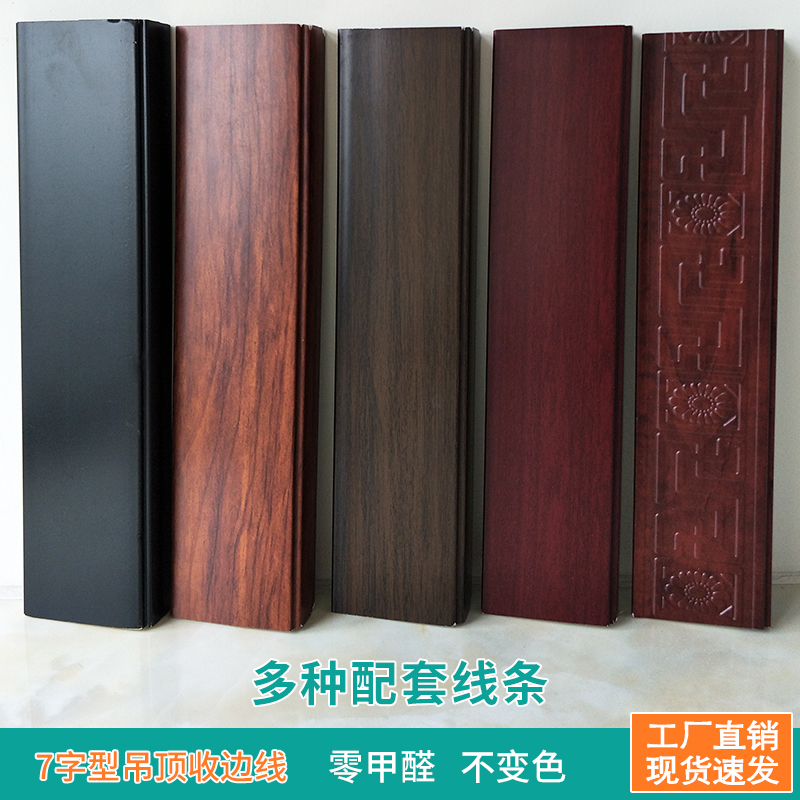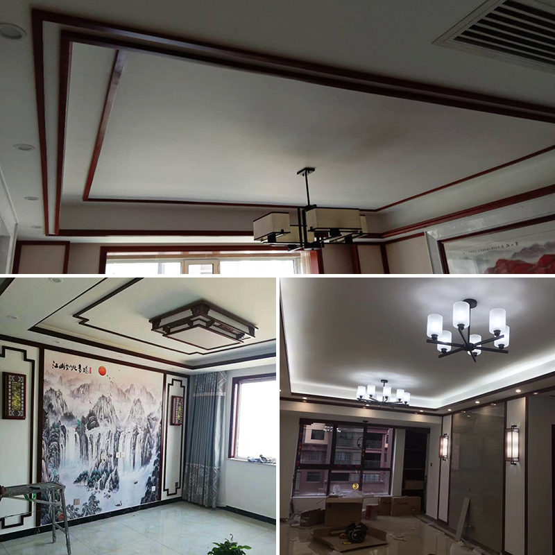New Chinese Pendant Ceiling Trim 7 Word Receiving Sidebar L-Shaped Solid Wood Line Secondary Small Flower Styling Border PS Black