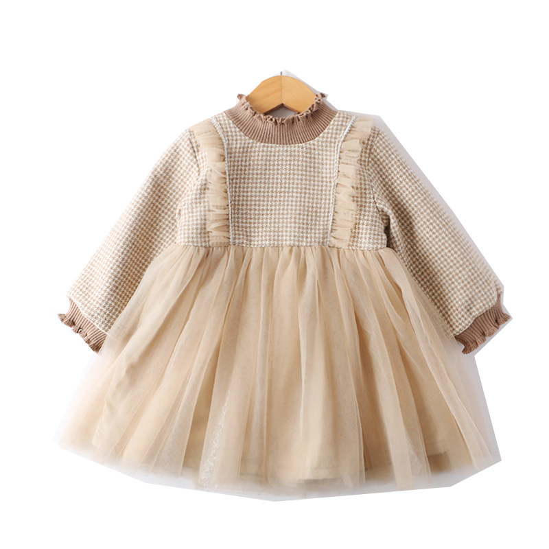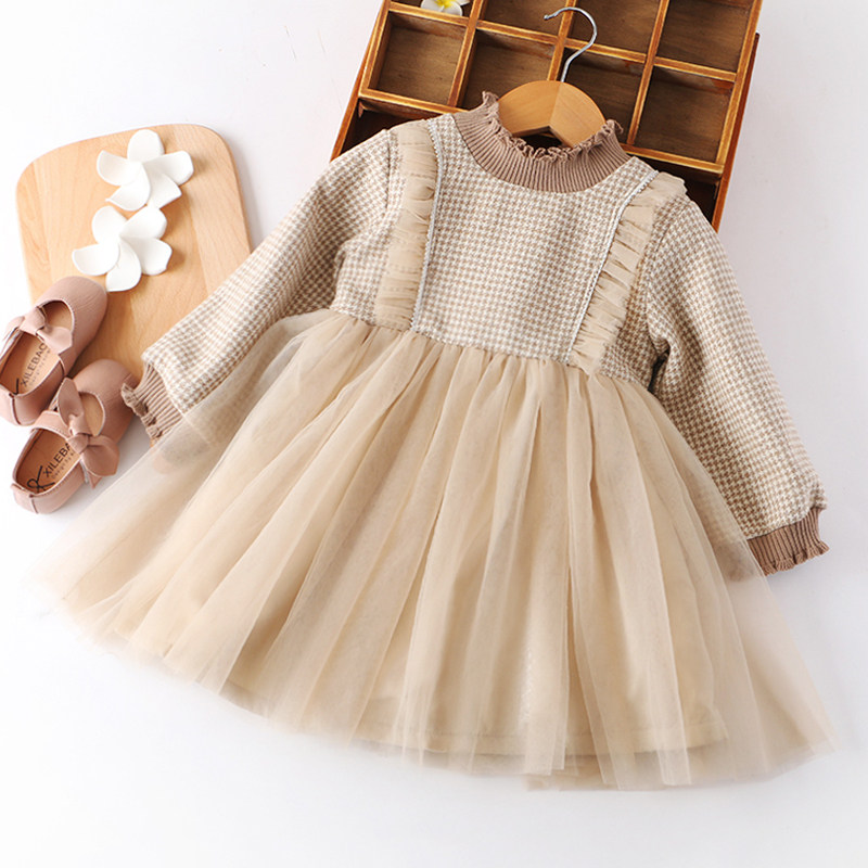 Girls dress autumn and winter girls plus velvet skirt new children's foreign style gauze skirt princess skirt baby long-sleeved winter skirt