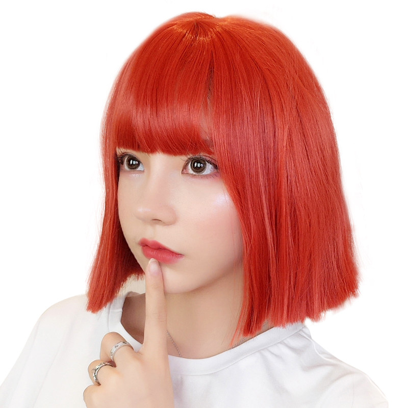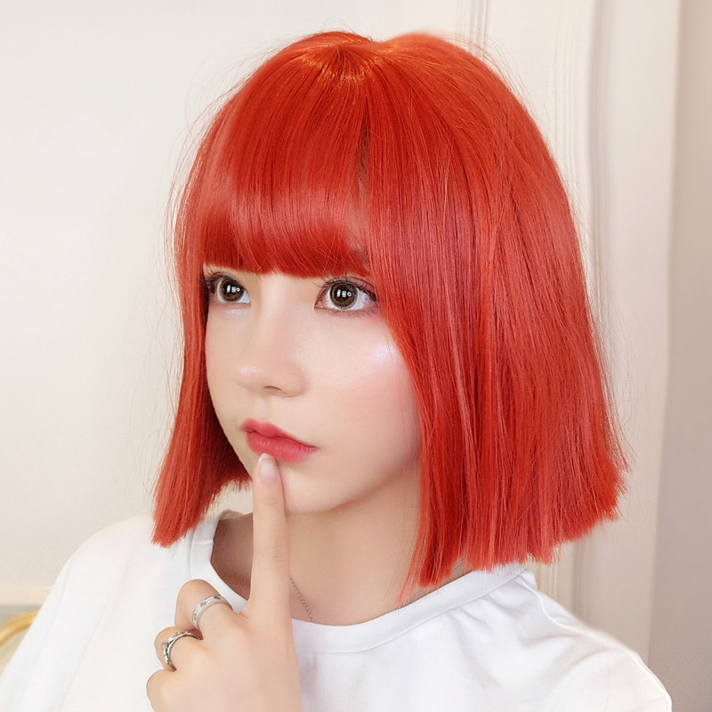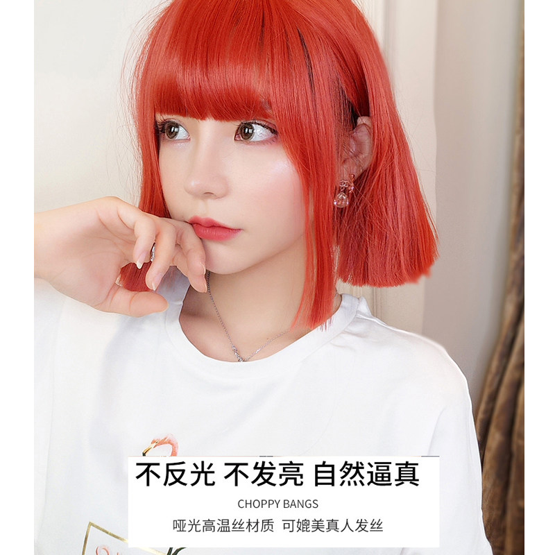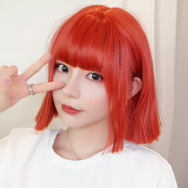 Wig Woman Short Hair Natural realistic air false Sea Watermelon Red Short Straight Hair Personality Net Red Full Head Style Wig Sleeve