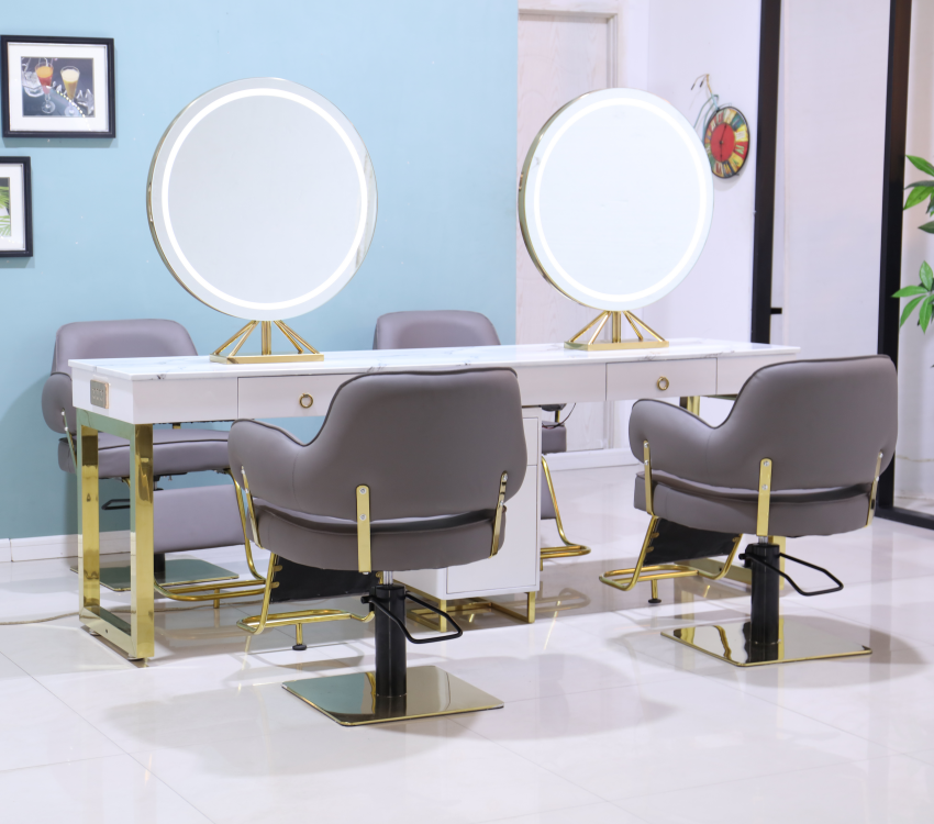 Solid wood with lamp Beauty Mirror Single-sided Mirror bifacial mirror Four Sides Mirror Table Hairdressshop Cut Hair Makeup Bronzed Mirror Table