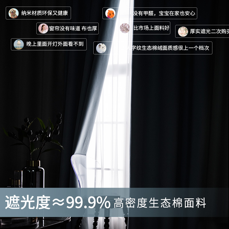 Full blackout curtain cloth Nordic simple bedroom sound insulation 100 thickened sunshade insulation sunscreen new 2020 popular