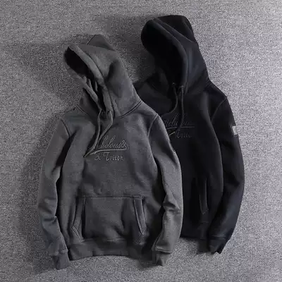 Personality simple plus velvet hooded sweatshirt jacket autumn and winter three-dimensional letter embroidery youth hoodie top men