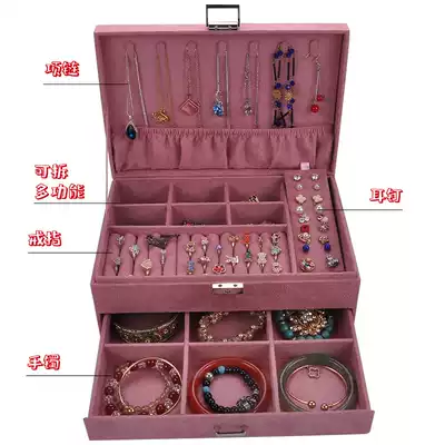 Anti-jewelry oxidation ring ear needle earring necklace wooden jewelry box double Princess storage box shake sound Net Red