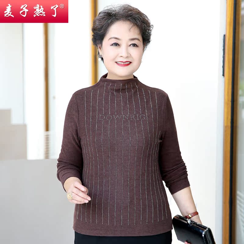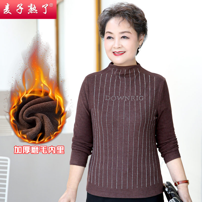 Mother Winter Clothing Plus Suede Thickened Undershirt Autumn Winter New Broads Outside Wearing Long Sleeve T-Shirt Mid-Aged Women's Clothing